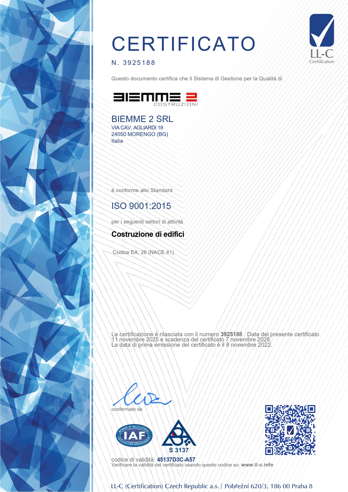 Nasce Biemme 2 per volontà dei soci fondatori, tra i quali rimane tutt'oggi amministratore il sig. Giovanni Berta, con l'obiettivo di portare qualità e rigore nel settore delle costruzioni industriali nel nord Italia.